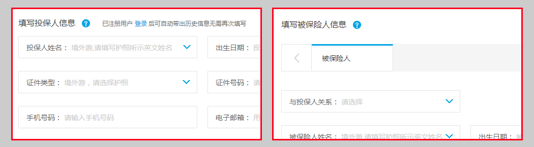 2.如境外游,建议在“证件类型”请选“护照”,填写名字 中文/拼音,例如“ 张三/ZHANGSAN”,方便您签证。